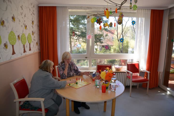 Besonders stolz sind wir auf unseren abgetrennten Wohnbereich für an Demenz erkrankte Bewohner:innen, der mit 13 Pflegeplätzen und einem eigenen geschützten Garten speziell auf ihre Bedürfnisse ausgerichtet ist. Hier schaffen wir eine Umgebung, die Sicherheit bietet und trotzdem Raum für Individualität und Lebensqualität lässt.